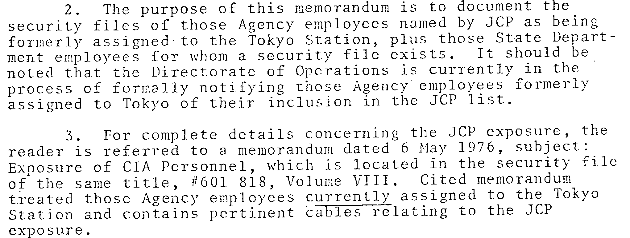 Record 1: 104-10130-10026. In 2018, this record had three blank boxes covering up three phrases. These were removed in 2022, to show what looks like highlighting. With some hard squinting, one can make out “Tokyo station”, “Tokyo”, and “Tokyo station”. For 2026, CIA came up with a copy of the record that has no highlighting, confirming my squint readings. Here excerpts from the docs, in chronological order: