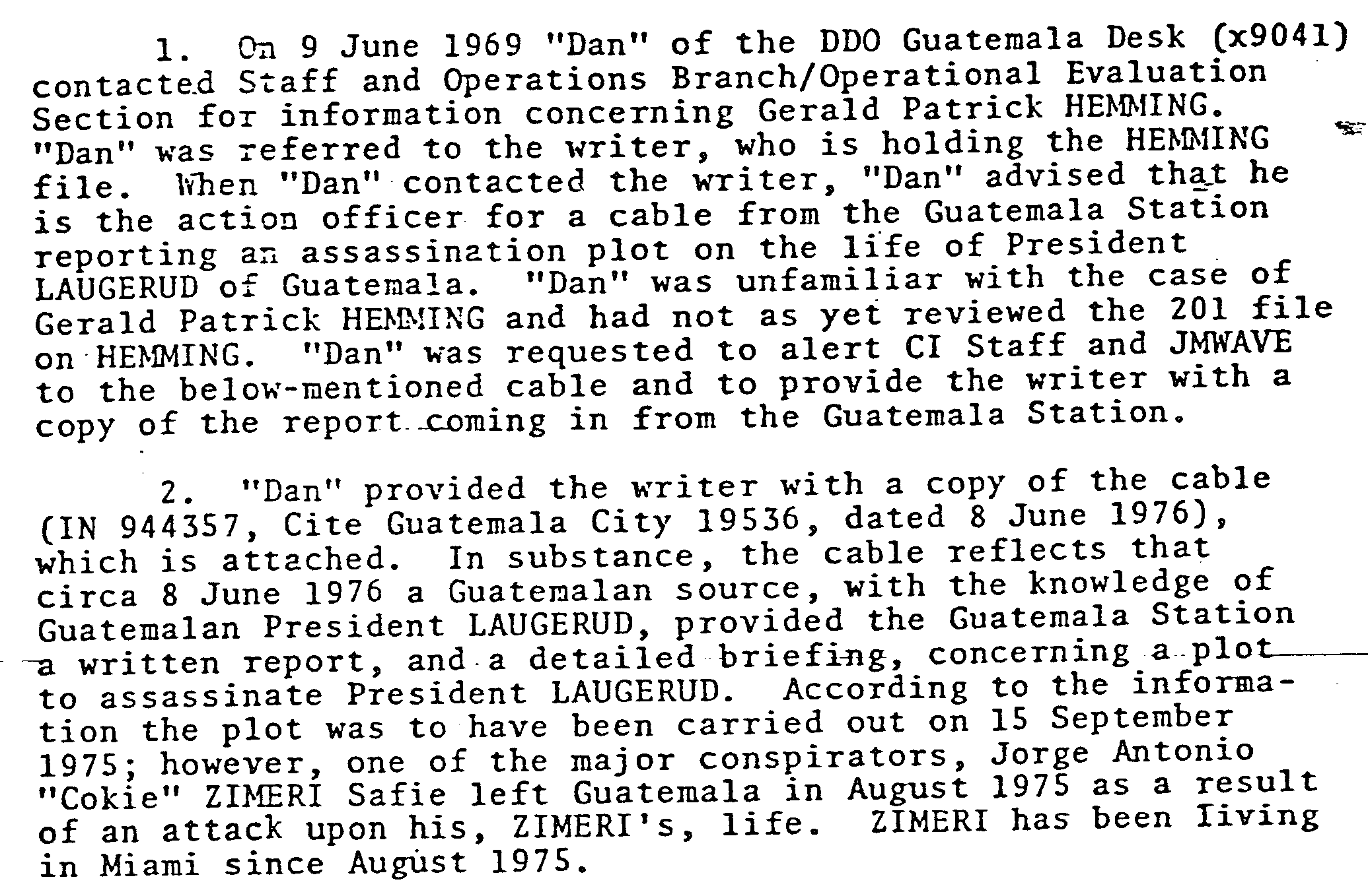 This memo is duplicated several times throughout the JFK collection, in various states of redaction and release, as if it were of some special significance. Dating from the 1970s, however, it cannot possibly have any significance for the Kennedy assassination. It is just a doc from the CIA’s file on Gerry Hemming.